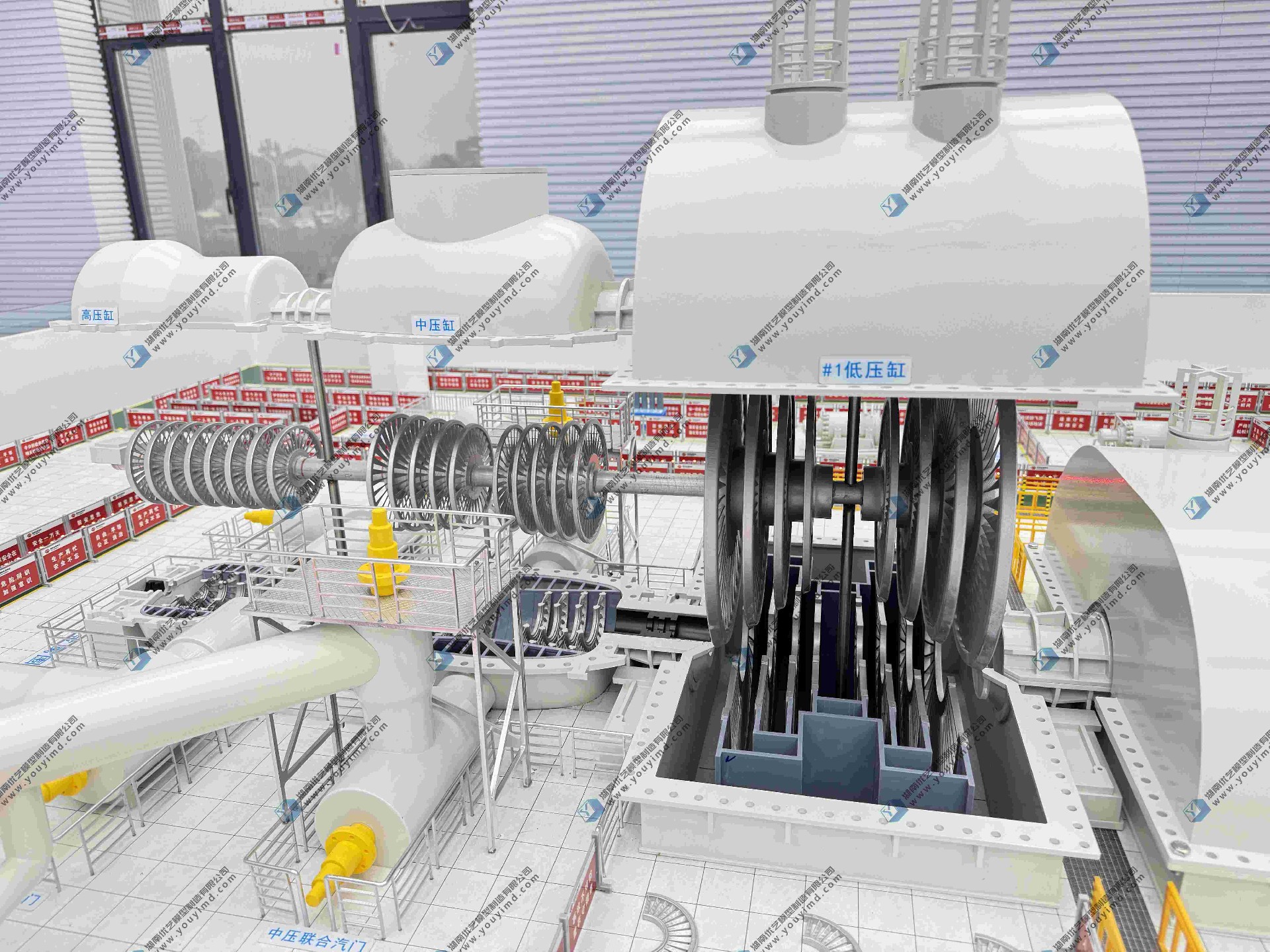 模型以5000mm(长)×3000mm(宽)×650mm(高)的大尺寸,等比例定制还原国家能源集团长源汉川电厂百万机组汽轮机、