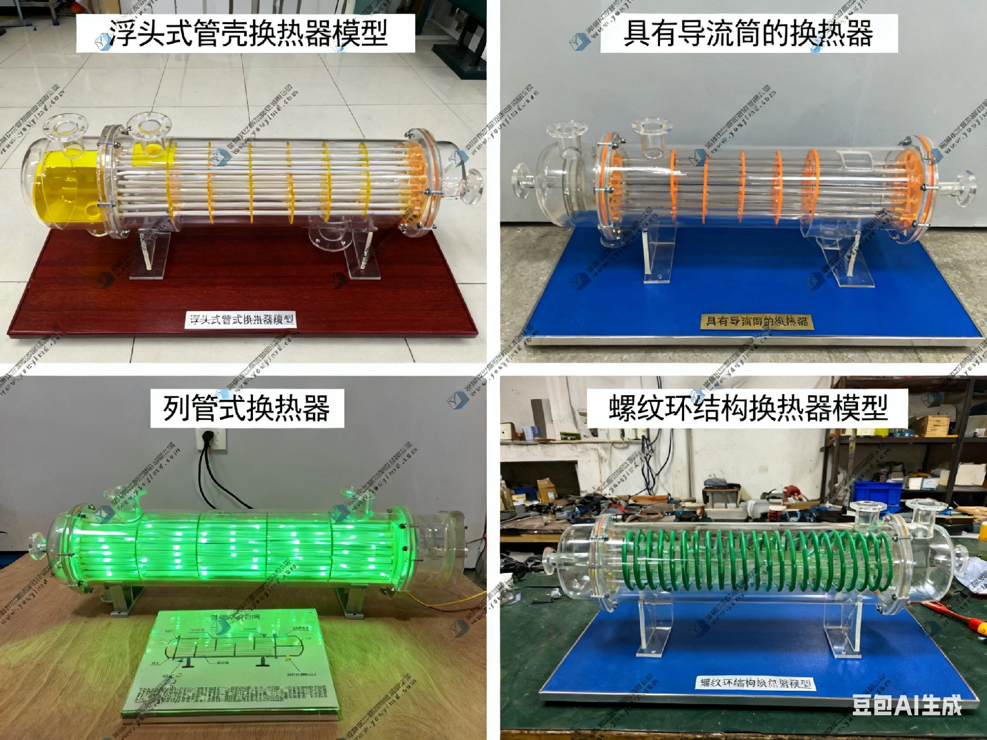 模型采用高强度透明材质与精密剖分技术,完美揭示各种换热器的内部奥秘: